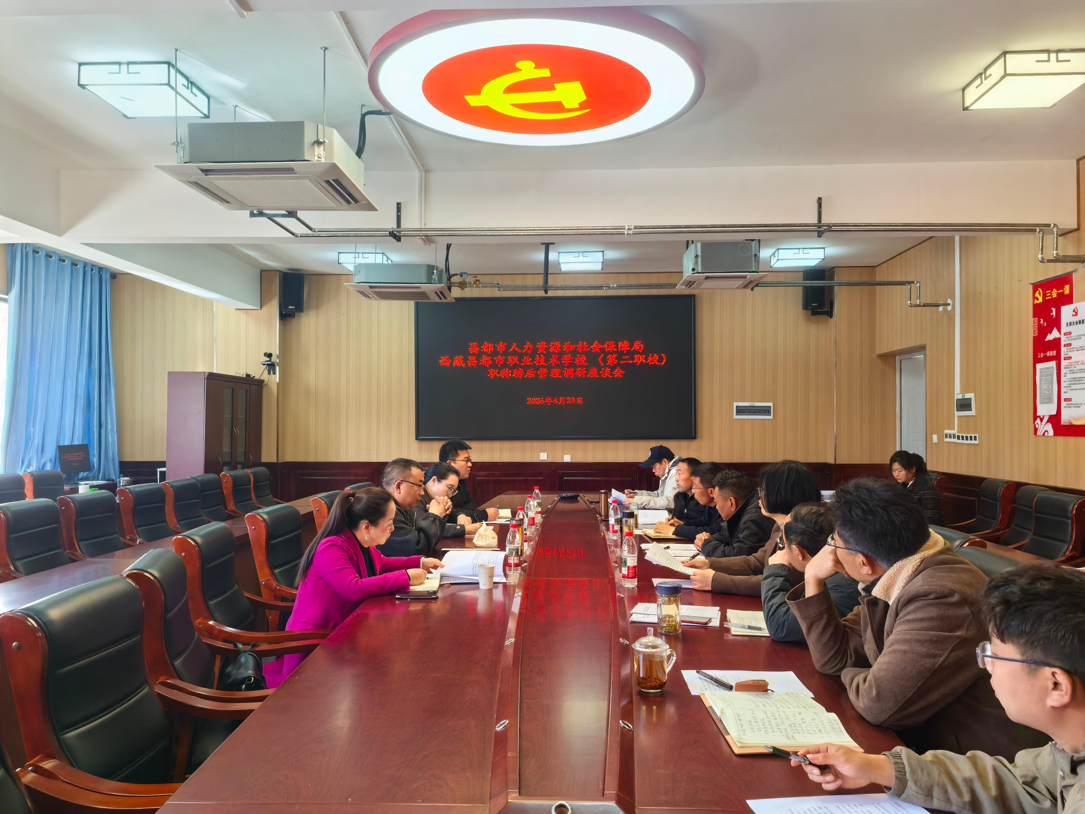 4月23日,市委组织部副部长、市人社局党组书记程勇带队赴昌都市职业技术学校,开展专业技术人员聘后管理业务指导,主动靠前对接、精准破解难题。市职业技术学校主要负责同志、相关业务科室负责人及专业技术人员代表随同配合开展工作。