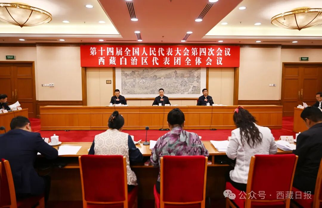西藏代表团举行全体会议审议有关报告和决议草案王君正严金海参加嘎玛泽登主持